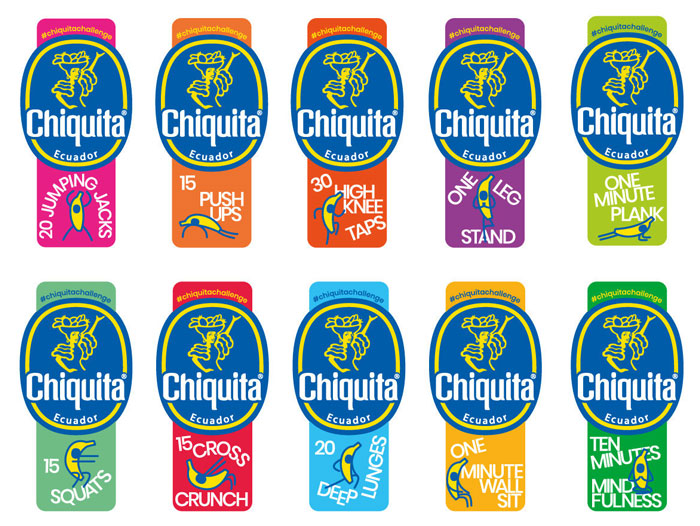 FORT LAUDERDALE, Fla. — Chiquita is ‘bananas’ about fitness this summer. Beginning today, more than 200 million Chiquita bananas will be sporting a collection of 10 fitness stickers with simple and quick exercise challenges to help promote a healthy diet and lifestyle. This new sticker series is a reminder that fitness can be fun and easy, and a Chiquita banana can serve as a complement to a healthy routine.