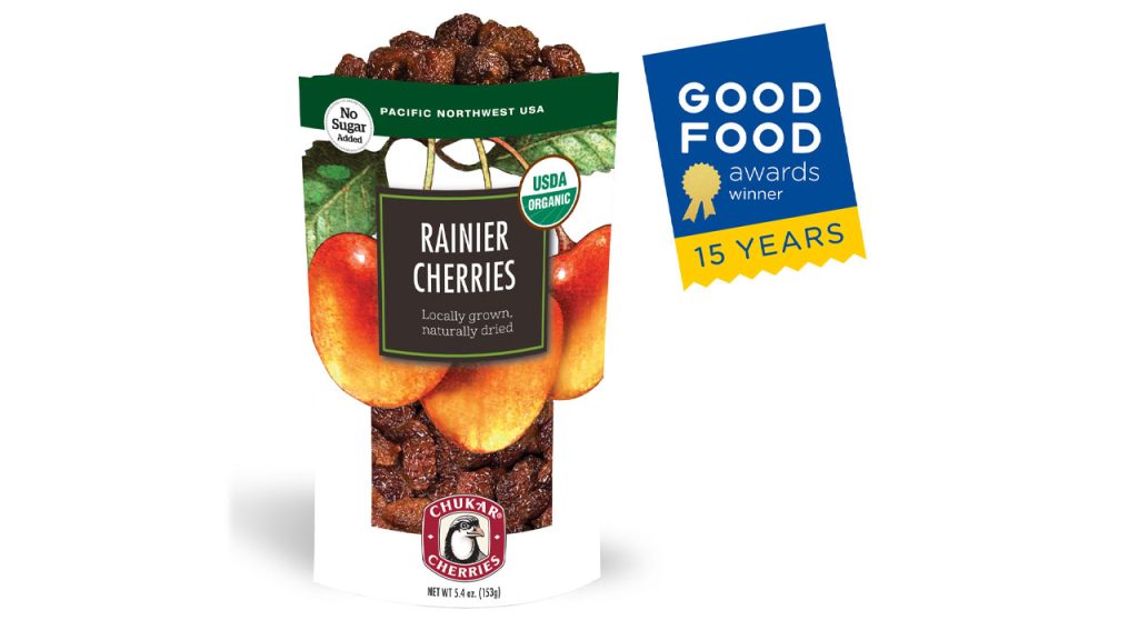 Prosser, WA – Chukar Cherries is honored to announce that our Organic Ranier Cherries have been recognized again with a Good Food Award (GFA)—this time as part of 15 Years of Good Food Awards. Chukar Cherries joins a select group of 55 winners across 18 categories who have demonstrated enduring excellence in taste, craftsmanship, and ethical production. The Prosser, WA based family business was one of three Washington companies to receive the award.