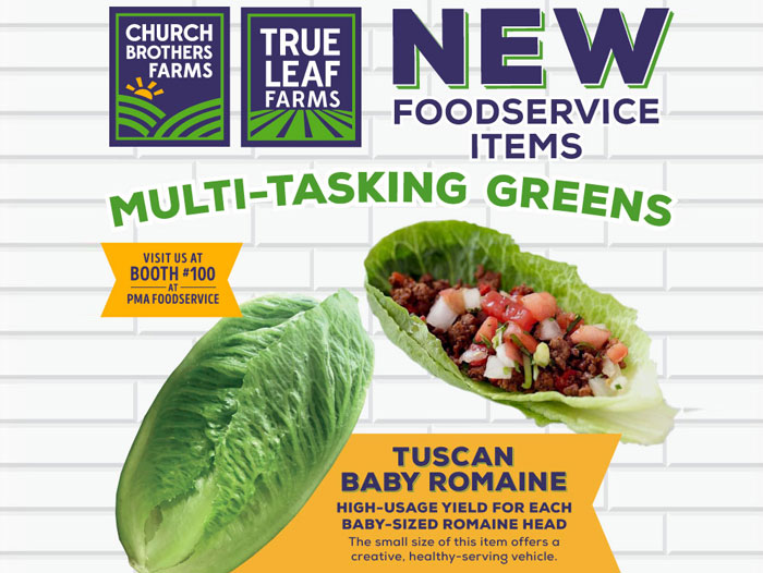 SALINAS, Calif. – Church Brothers Farms is introducing three on-trend products, Sweet Baby Broccoli, Tuscan Baby Romaine and Sandwich Ready Leaves, at the 2019 PMA Foodservice Expo in booth 100.