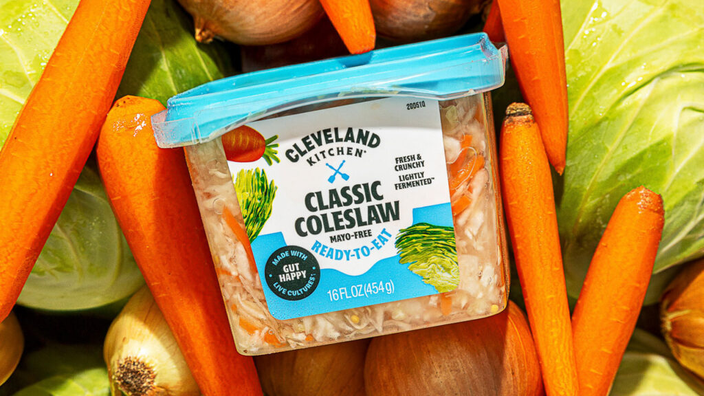 This vibrant, crunchy coleslaw is the first and only fully prepared, ready-to-eat coleslaw in the produce aisle. Additionally, its vinaigrette style dressing offers a refreshingly lighter, healthier alternative to mayo-heavy deli versions and DIY coleslaw kits. Made with fresh, crunchy vegetables and Cleveland Kitchen’s lightly fermented proprietary process, it’s packed with craveable flavor and gut-happy benefits. This innovative coleslaw delivers a modern, ready-to-eat, better-for-you twist on a classic, and fills a long-standing gap for shoppers seeking a fresher, healthier option.