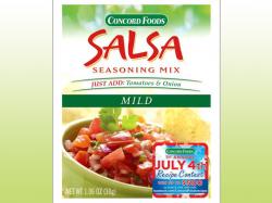 Concord Foods is sponsoring the First Annual July 4th Recipe Contest. Consumers are invited to submit recipes for All American Cookout Classics and Star Spangled Salad amongst other patriotic categories for a chance to win up to $500.00 cash. All recipes are required to use Concord Foods Guacamole or Salsa Seasoning Mix.