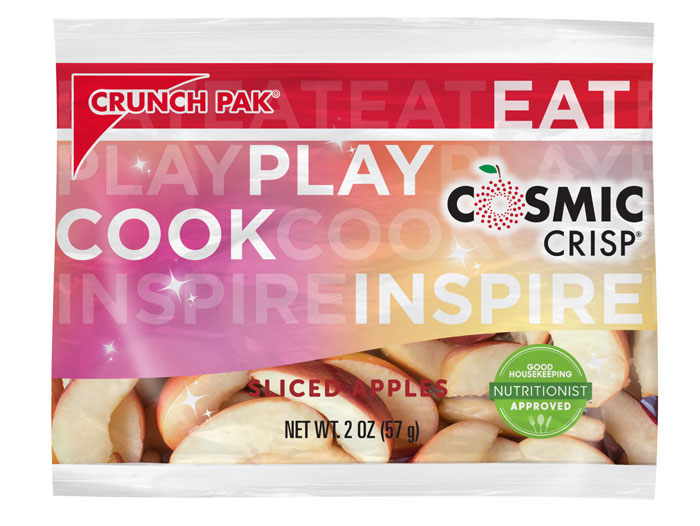 Cosmic Crisp® fresh-cut apples pouches can be previewed at United Fresh 2019 in June and sampled at PMA Fresh Summit in October, followed by a December retail rollout. Cosmic Crisp® joins Crunch Pak’s robust offering of variety-specific apples.