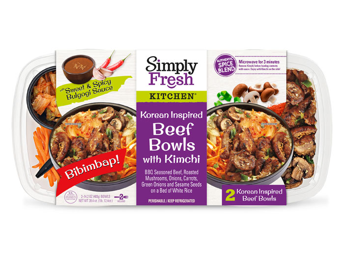 FiveStar remains at the forefront of leading innovation with a long history of successful fresh and convenient single-serve launches under its Simply Fresh brand. The brand, known for its Simply Fresh Salads®, continues to expand into other fresh, easy, and high-quality culinary products. The Simply Fresh Kitchen® Korean-inspired Beef Bowls with Kimchi and Bulgogi Sauce include BBQ seasoned beef, fire-roasted mushrooms, onions, carrots, green onions, and sesame seeds on a bed of white rice.