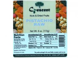 The products are packaged in 6 oz. clear, plastic bag with Crescent Nuts & Dried Fruits Pistachio Raw label attached with UPC code 8 95296 00103 5 and were distributed from October 21, 2015 – May 2, 2016. See photo below.