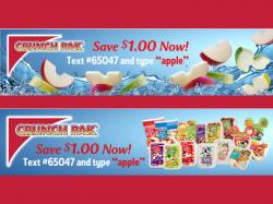 Beginning Aug. 18, the electronic billboard will carry a message asking consumers to “text the word APPLES to the number 65047” for a special offer. When consumers do so, they will be sent a link to a coupon for $1 off any size package of Crunch Pak sliced apples.