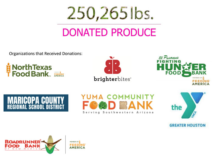 Salinas, CA: D’Arrigo California donated 250,265 lbs.of Andy Boy produce to children, families and elderly challenged by food scarcity due to COVID-19. The organizations that received the donations are the Food Bank of El Paso (TX), Food Bank of Yuma (AZ), North Texas Food Bank (Dallas,TX), Roadrunner Food Bank (El Paso, TX), El Pasoans Food Bank(El Paso, TX), Maricopa County Schools(Phoenix, AZ), YMCA locations in Houston (TX) and Brighter Bites schools and communities in Houston (TX).