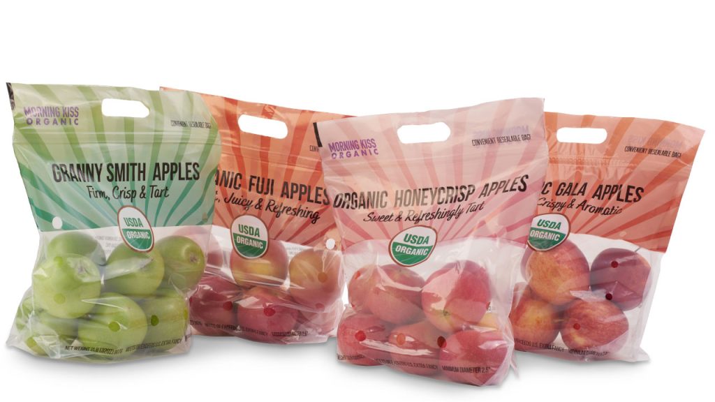 Morning Kiss Organic apples are available in Gala, Granny Smith, Fuji, Honeycrisp, and—new this season—Organic Cosmic Crisp® in 2lb bags. Cosmic Crisp® has quickly become one of the fastest-growing apple varieties in the marketplace, with double-digit growth each of the past two years in both volume and consumer demand. Adding this premium variety in a family-friendly 2lb bag format gives retailers a powerful option to capture sales during peak season.