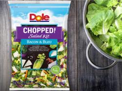 The seven DOLE Chopped Salad Kits – with varieties that include Bacon and Bleu, BBQ Ranch, Chipotle & Cheddar, Pomegranate, Poppy Seed, Sesame Asian and Sunflower Crunch – are part of a larger line of packaged salad blends and kits, including conventional and family-size, sold under the DOLE brand.