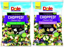 Dole will add two new, flavor-focused chopped salad kits to its five other chopped salad SKUs introduced last fall to strengthen its grip on the segment and build upon the industry’s first and most complete line of all-natural chopped salads kits and blends.