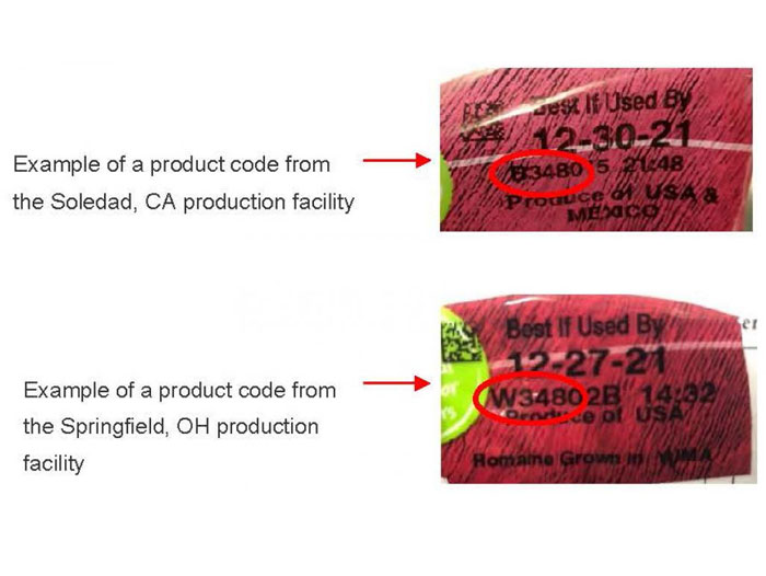Products subject to the voluntary recall from Springfield, OH are identified by a product lot code beginning with the letter “W” and a “Best if Used By” date between December 22, 2021 and January 9, 2022. Products subject to the voluntary recall from Soledad, CA are identified by a product lot code beginning with the letter “B” and a “Best if Used By” date between December 23, 2021 and January 8, 2022. The product lot codes are located in the upper-right-hand corner of the package (see example below). Consumers who still have any of these products in their refrigerators are urged not to consume the product and to discard it immediately. No illnesses have been reported with the products being recalled to date.