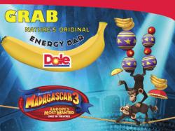 DOLE’s alliance with DreamWorks andMadagascar 3 is part of its Go Bananas Every Day, a year-long initiative to introduce compelling new ways to enjoy the fruit for breakfast, lunch and dinner, and as a healthier, natural alternative to processed energy bars and drinks loaded with sodium and sugar. A national “Go Bananas Every Day” tour will make stops in Portland, Ore., Seattle, Baltimore and Charlotte, N.C.
