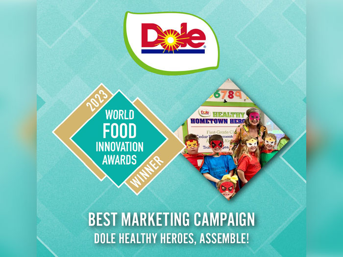 CHARLOTTE, N.C. – Dole Food Company has received top marketing honors from the 2023 World Food Innovation Awards for a nine-month empowered living initiative inspired by the Marvel Cinematic Universe. The 2022 digital and in-store campaign, Dole Healthy Heroes, Assemble!, was judged the most meaningful, innovative and effective campaign impacting a specific audience from among entries submitted from around the world. World Food Innovation Awards, in association with IFE, is a celebration of innovation and excellence across every category of the global food industry.