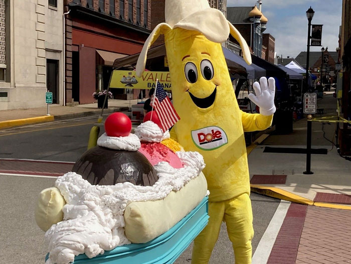 To celebrate the official designation, the City of Latrobe and the Greater Latrobe-Laurel Valley Chamber of Commerce partnered with Dole Food Company to host the first Great American Banana Split Celebration and welcome a number of special guests including Bobby Banana, Dole’s 7-foot healthy-living mascot armed with Dole’s healthier-but-tasty version of the classic banana split.