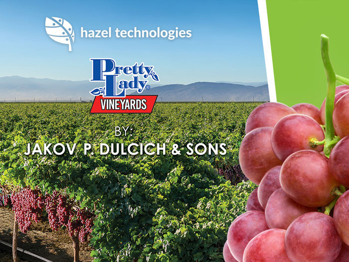 CHICAGO, IL – Hazel Technologies, Inc. developer of USDA-funded technologies to protect produce quality, announces a collaboration with McFarland, CA-based Jakov Dulcich & Sons, a family-owned and operated table grape grower/packer/shipper with 60+ years of experience and over 3,000 acres of vertically integrated fresh table grapes under management. Dulcich & Sons is best known for their Pretty Lady brand, recognized as a leader in quality and taste in the table grape industry. The team exports green, red, and black varietals globally through their worldwide marketing arm, Sunlight International Sales, Inc.