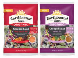 SAN JUAN BAUTISTA, Calif. – Earthbound Farm, a leading organic food company and the nation’s leading grower of organic produce, is launching a new line of organic chopped salad kits – ready-to-serve blends of crunchy organic cabbage and romaine, chopped vegetables, toppings and flavorful dressings.