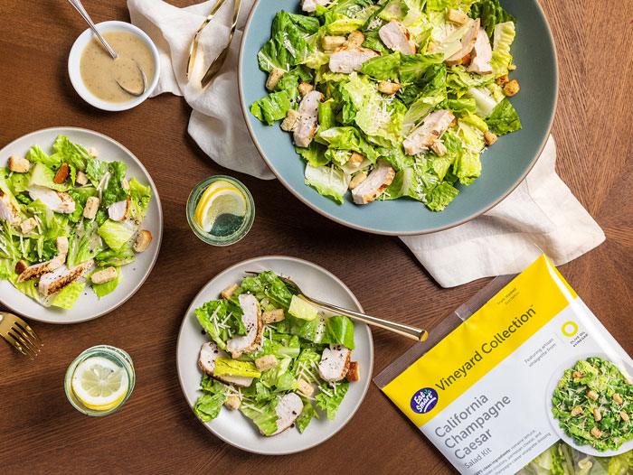 California Champagne Caesar: A light and flavorful spin on the traditional classic, features a vinaigrette dressing made with handcrafted ingredients from O Olive Oil & Vinegar – Citrus Champagne Vinegar and California Olive Oil – blended with garlic, anchovy and lemon. This delightful dressing complements crisp romaine, shredded Parmesan, and multigrain croutons for a truly unique Caesar salad.