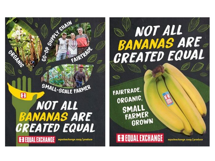 This month look out for new POS for Equal Exchange bananas that show “Not all Bananas are Created Equal”, a webinar series connecting the supply chain, and information on the farmer co-ops they partner with.