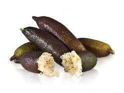 Fingerlimes, often called caviar limes, are a long thin citrus fruit that can be cut length wise or in circles.  Either way, they reveal vesicles that contain a wonderful lemon-lime juice that is sweet/tart enough to eat on its own.  From simple preparation in ice-cubes to ceviche with beluga, the Fingerlime will add beauty and flavor to any salad, pastry, seafood dish, guacamole or margarita.