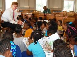 Tallahassee, FL – Surrounded by more than 50 kids from Apalachee Tapestry Magnet School of the Arts, Commissioner of Agriculture Adam H. Putnam read “Florida’s Farm History!” today in the historic Senate Chambers of the Old Capitol.