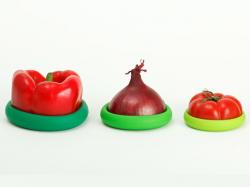 Food Huggers are made of FDA grade silicone, which stretches to create a tight seal with the cut surface of a leftover piece of produce, keeping it from drying out or turning brown in the refrigerator. Food Huggers come in 4 overlapping sizes that nest together to store flat in a drawer, and they are dishwasher-, microwave- and freezer-safe, as well as BPA-free and phthalate-free. Plus, they come in 4 different vibrant colors that look great on any pages!