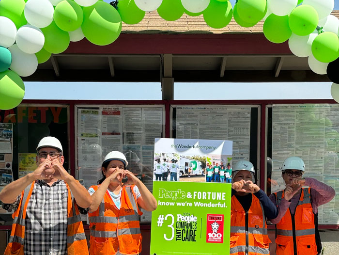 In 2024, The Wonderful Company earned the No. 3 spot on PEOPLE magazine’s Companies That Care list and was named one of the Best Places to Work in the Central Valley. It was previously named to Fast Company’s 2023 Brands That Matter for providing free, quality health care to its workforce, local students, and their families.