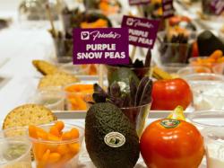 Each table of 10 comprised a team and was provided a platter of fresh ingredients: baby carrots from Bolthouse Farms, an avocado from the California Avocado Commission, purple snow peas from Frieda’s Specialty Produce, and a tomato from Tasti-Lee Tomatoes. Additionally, seasonings, Greek yogurt, sunflowers seeds, and dried cranberries were provided. The teams were given 15 minutes to put together a fun and creative recipe that would appeal to children. The entries included dishes like “Bugs & Bunny,” “Avocado Monster,” "Oscar's Garbage Can Dip,” and “Lemony Snowman.”
