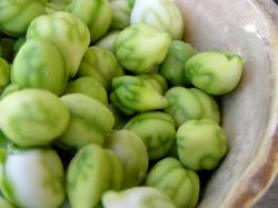 Garbanzo beans, also known as chickpeas, generally ripen on the plant into the shriveled, beige pebbles most people are familiar with. But fresh chickpeas, which are picked in their infancy, are green and encased in thin, pliant pods, much like edamame (soybeans in their shells.)