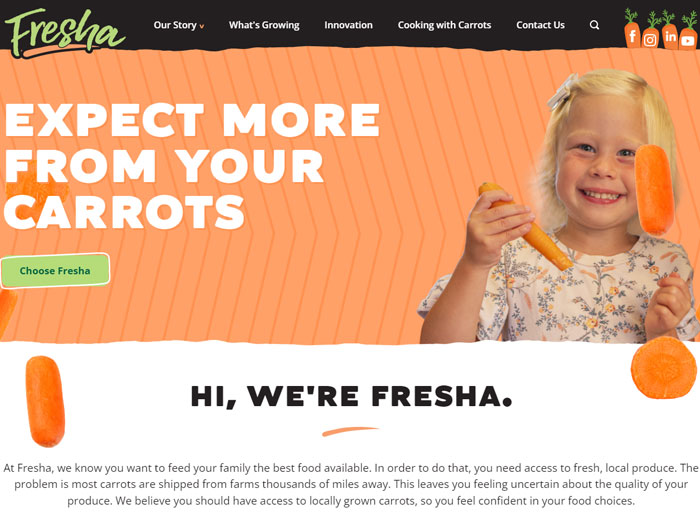 “Our redesigned website reflects our dedication to providing not only the freshest carrots but also a fresh online experience for our customers,” said Matthew Wulf, VP of Sales and Marketing. “We want our website to be a destination for inspiration, information, and, most importantly, a celebration of the joy that Fresha brings to families.”