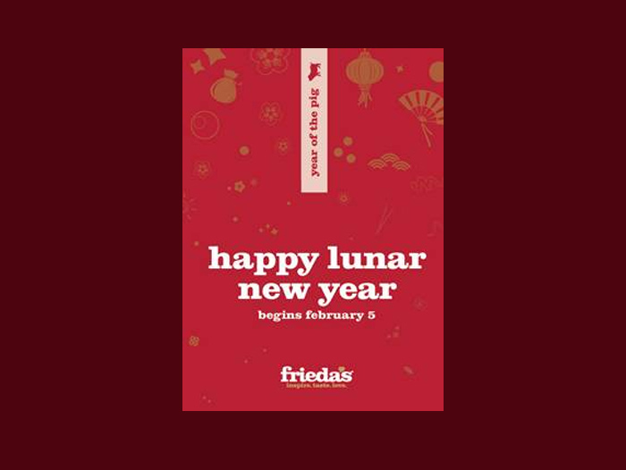 Los Alamitos, CA – With February fast approaching, the holiday traditionally celebrated as Chinese New Year is upon us. This year, Frieda’s is innovating to recognize it as Lunar New Year to be more inclusive of all Asian cultures that celebrate the holiday. This is a great opportunity to bring into your store shoppers who are familiar with or curious about Asian cuisine, while appealing to shoppers of all Asian descents. The Year of the Pig will begin on February 5 and be celebrated through February 19.