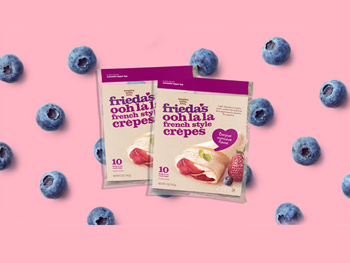 Providing recipe inspiration is another way to drive customer purchases. With berries being a popular complement to crêpes, we recommend sharing a recipe like our Blueberry Lemon Mousse Crêpes and cross-merchandising with the berries to have a one-stop pop-up display. Frieda’s offers a shelf-stable display box that holds 12/5 oz. packages of Frieda’s French Style Crêpes, which makes creating these types of displays easy.