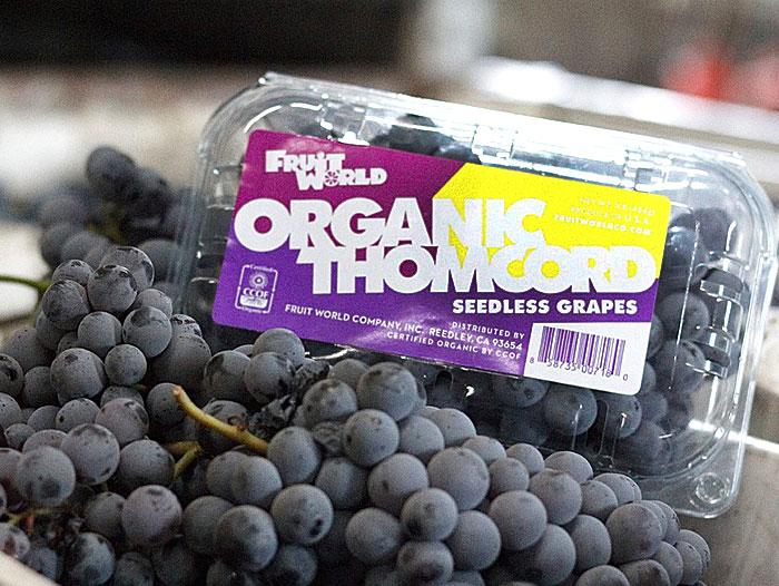 Reedley, CA – Fruit World Co. anticipates an increased supply of their organic Thomcord grapes for the upcoming 2019 season. A hybrid of the heirloom “grape jelly” Concord Grape and popular Thompson Seedless grape, Thomcords are known for being exceptionally flavorful and aromatic. Once again in 2019, each pack of Fruit World Organic Thomcord Grapes will engage consumers by sharing the Fruit World story and inviting consumers to send a text message to the grower.