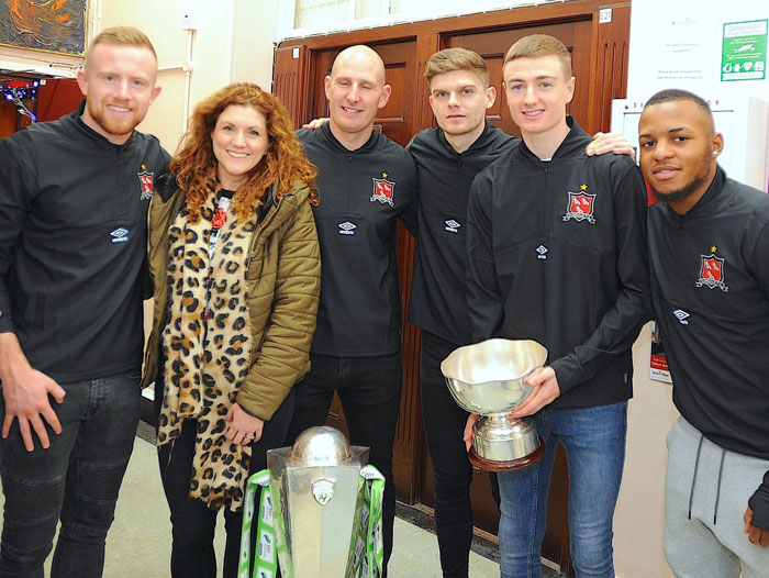 Players from Dundalk Football Club recently joined character Freddy Fyffes on a visit to see the young patients at Temple Street Children’s Hospital.