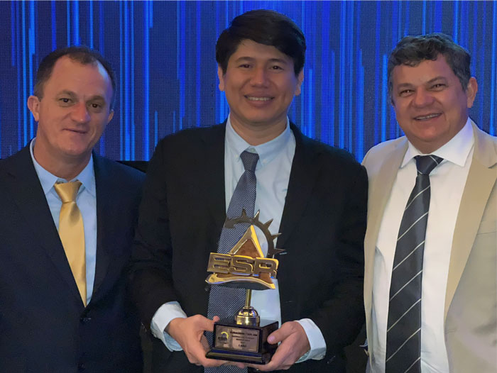 PHOTO CAPTION: Sol Group’s Reginaldo de Lima, Michael Fletes and Genivaldo Pereira pictured receiving the FUNDAHRSE Socially Responsible Company Seal at an award ceremony in Honduras’ capital city Tegucigalpa.