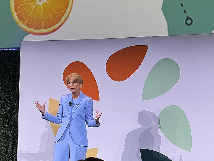 During the annual keynote in Atlanta, IFPA CEO Cathy Burns emphasized the significance of fresh produce and floral in fostering societal well-being, launching the "Fight for Fresh" campaign aimed at influencing policymakers. She celebrated advocacy successes, like preserving the WIC fresh fruit benefit, and discussed technological innovations like AI, crucial for industry transformation. Burns also addressed climate challenges, urging collaborative responses, while advocating for improved dietary access for billions globally, asserting, “Fresh produce and floral is worth fighting for.”
