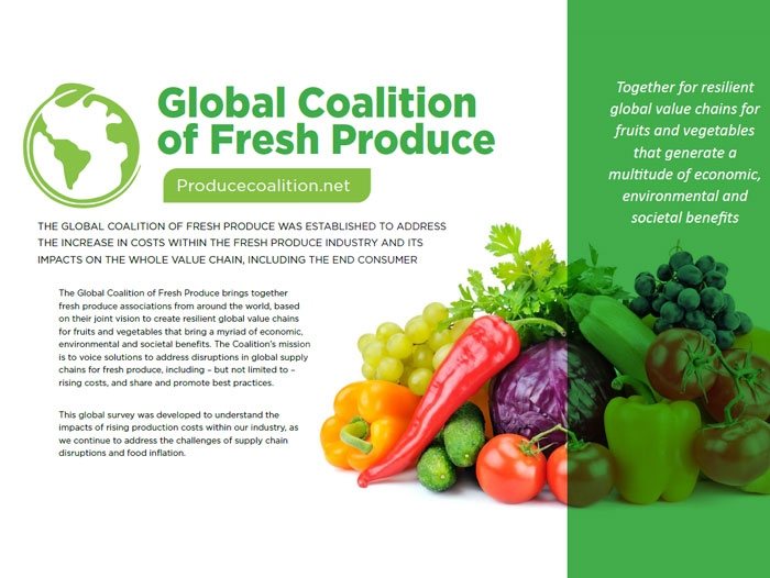 “We are conducting this global survey to shed light on the challenges experienced by actors in the fresh produce supply chain worldwide,” says Ron Lemaire, Chairman of the Coalition. “The results of this new survey will help the industry, its partners and all government levels understand the current impacts of production and operating costs and selling prices, and work together to address them.”