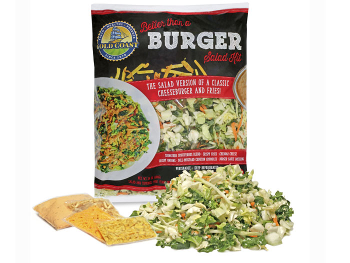 Santa Maria, CA – Adding a flavorful option to your meal just got easier, as Gold Coast Packing has added to its retail lineup, bringing on its first complete salad kit, Better Than a Burger Salad. The new offering captures all the flavors of a burger and fries but in a healthier salad version.