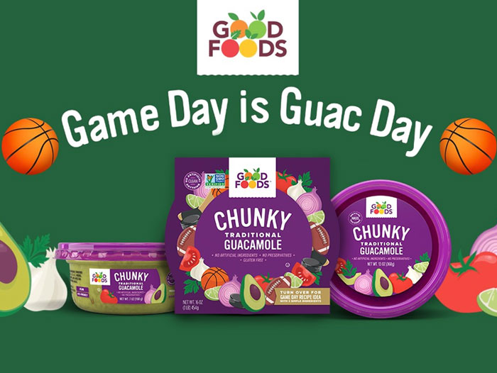“Guacamole is the perfect snack to have on hand for any game day,” said Mandy Bottomlee, director of content marketing for Good Foods. “Our ‘Game Day is Guac Day’ campaign is focused on promoting our guacamole line and driving shoppers in store to purchase our dips to watch during the games.”