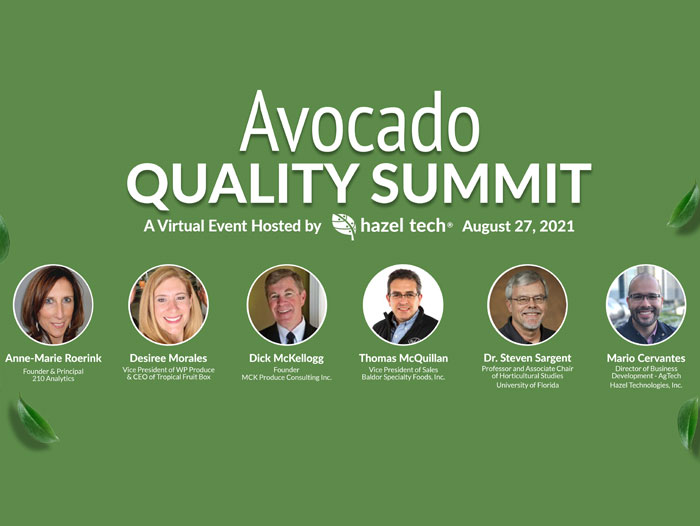 The event will begin with a data analytics presentation led by Anne-Marie Roerink of 210 Analytics, followed by an Industry Perspectives Panel led by Pat Flynn, co-founder and CMO of Hazel Technologies. Panelists include Desiree Morales, Vice President of WP Produce and CEO of Tropical Fruit Box, Dick McKellogg, Founder of MCK Produce Consulting Inc. and former Director of Produce & Floral Merchandising at Lowe’s Foods, and Thomas McQuillan, Vice President of Sales at Baldor Specialty Foods, Inc. The panel will be followed by a presentation on postharvest best practices for avocados given by Dr. Steven Sargent, Professor and Associate Chair of Horticultural Studies at the University of Florida. The summit will close with a postharvest solutions discussion with Mario Cervantes of Hazel Technologies, Inc.