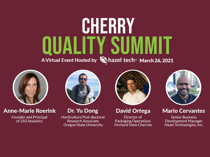 CHICAGO, IL – Hazel Technologies, Inc., a USDA-funded technology company delivering new solutions for fresh produce to extend shelf-life, increase sales, and fight food waste, announces the launch of the first ever virtual Cherry Quality Summit. A one hour event will be held on Friday March 26th, the summit will feature keynote speakers from across the industry ahead of the 2021 Northern American cherry season.
