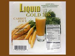 Consumers who have purchased Liquid Gold Carrot Juice should not consume the product and are urged to return it to the place of purchase or discard the product. Consumers with questions may contact the company at (213)749-7999, Mondays through Fridays 6am-3pm PST.
