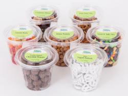 Current products available include snack mixes (Shanghai Snack Mix, Sweet & Salty Mix, Zesty Party Mix, and Cranberry Fitness); nuts (Honey Peanuts, Salted Peanuts, Hot & Spicy Peanuts); Snacks (Salted Sunflower Kernels, Sesame Sticks, Mini Yogurt Pretzels); and candy (Double-Dipped Chocolate Peanuts, Gummi Worms and Gummi Bears).