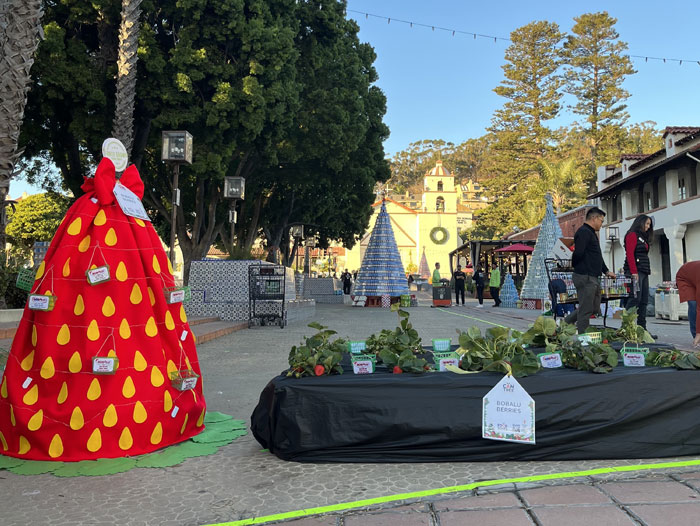 This year, the Bobalu team pulled out all the stops and built a strawberry field right in the middle of plaza in downtown Ventura. Two rows of cans were covered by a blanket of real strawberry plants that fed into one giant strawberry tree built entirely by cans.