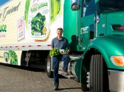 Carpinteria, CA – Green lettuce grown in a green way, hauled by a green truck running on green fuel. That’s a lot of green. Hollandia Produce LLC, a leader in clean and green farming with its Live Gourmet greenhouse vegetables, not only walks the green talk, it drives it, too. With the addition of its new state-of-the-art tractor-trailer truck that runs on natural gas, the Carpinteria-based family farm has taken its commitment to sustainability on the road. Coupled with a trailer cooled by a hybrid electric refrigeration unit, the delivery rig is nearly as green as its sustainably grown contents.