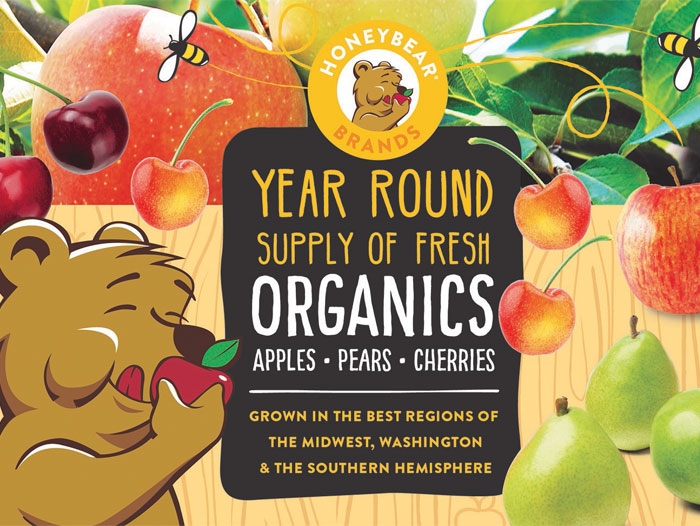Elgin, Minn. – Honeybear® Brands’ dual hemisphere growing strategy is delivering fresh organic apples and pears to retail customers, ensuring they can deliver on increased shopper demand for organic fruits. A strong overall volume in Washington, coupled with fresh picked crop arriving now from their Southern Hemisphere orchards, keep discriminating consumers satisfied with year round organic product availability. This, along with the debut of Organic Pazazz, make Honeybear an excellent resource for a complete organic program.