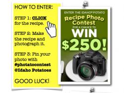 Click on the “Recipe Photo Contest” pinboard, or visit http://pinterest.com/idahopotato/recipe-photo-contest/ to find the current month’s featured recipe. Clicking on this pin will take you to the recipe on the Idaho Potato Commission’s website, www.idahopotato.com.