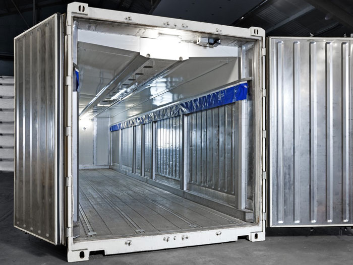 Measuring 2.6 metres wide by approximately 12 metres long, Interko’s Containerised Ripening Room can hold 20 full-sized pallets each stacked with up to 9 boxes of fruit. True to the Interko range, the system has been designed with energy efficiency in mind, plus it is quick to deploy. Considering the small dimensions of a container, the mechanical design is bespoke, including its own fan design. A gas-tight, high-speed roll door can also be provided for ease of access. The container is supplied with a small control room.