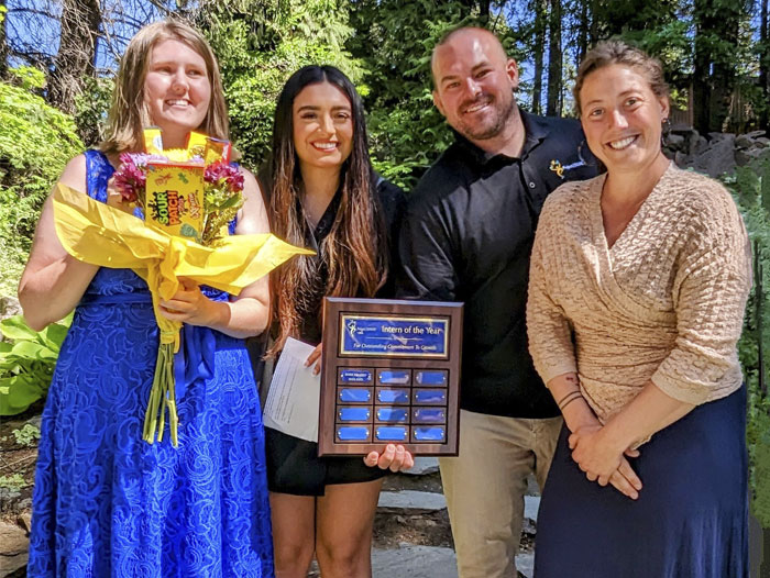 The interns joined the Project SEARCH Stemilt program in September 2022 and graduated June 6 at Ohme Gardens in Wenatchee, Washington. A combination of Eastmont and Stemilt staff, family and friends joined to celebrate the accomplishments of the interns with live music, a taco truck, speeches, and a Project SEARCH Stemilt themed cake custom made by a Project SEARCH skills trainer. After receiving their graduation certificate from Eastmont High School, one intern in particular, Emily Hensley, received a surprise Intern of the Year Award.