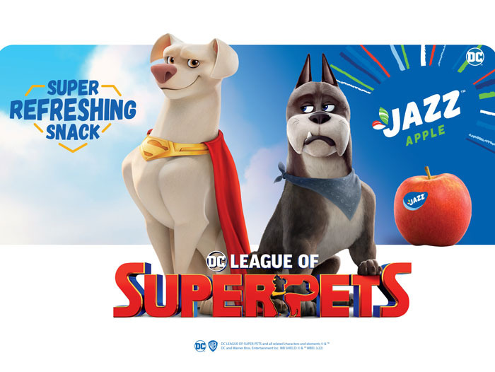 JAZZ™ apples are taking part in an exciting new adventure, thanks to a new global partnership with Warner Bros. Consumer Products, supporting Warner Bros. Pictures’ new animated adventure, “DC League of Super-Pets.”