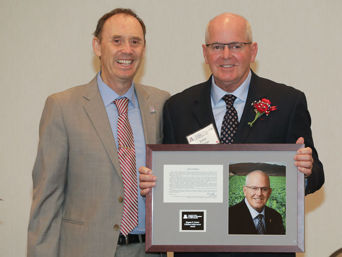 “We are honored to present John D’Arrigo the Eugene G. Sander Lifetime Achievement Award.  John is one of the true leaders of agriculture in the United States and an invaluable partner to the Yuma Center of Excellence for Desert Agriculture,” stated Shane C. Burgess, Vice President for the Division of Agriculture, Life and Veterinary Sciences, and Cooperative Extension for the University of Arizona. The inaugural award was given in 2011 and is presented to an individual who has demonstrated superior performance in activities reflected in the mission of the College of Agriculture and Life Sciences at the University of Arizona.