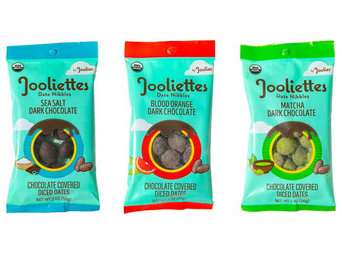 LOS ANGELES — Joolies, California-based grower of organic medjool dates, introduces a new way to date medjools with Jooliettes. Watch out Romeo, you’ll fall in love fast with these diced organic medjool dates panned in high-quality chocolate with a fresh twist on a traditional snack. Jooliettes Dark Chocolate Date Nibbles are the latest innovation in the dried fruit category, making dates more fun and approachable. Coming in three varieties including Blood Orange Dark Chocolate, Sea Salt Dark Chocolate, and Matcha Dark Chocolate offering two different retail sizes; 2oz pillow pouch and a 4oz resealable stand-up pouch.